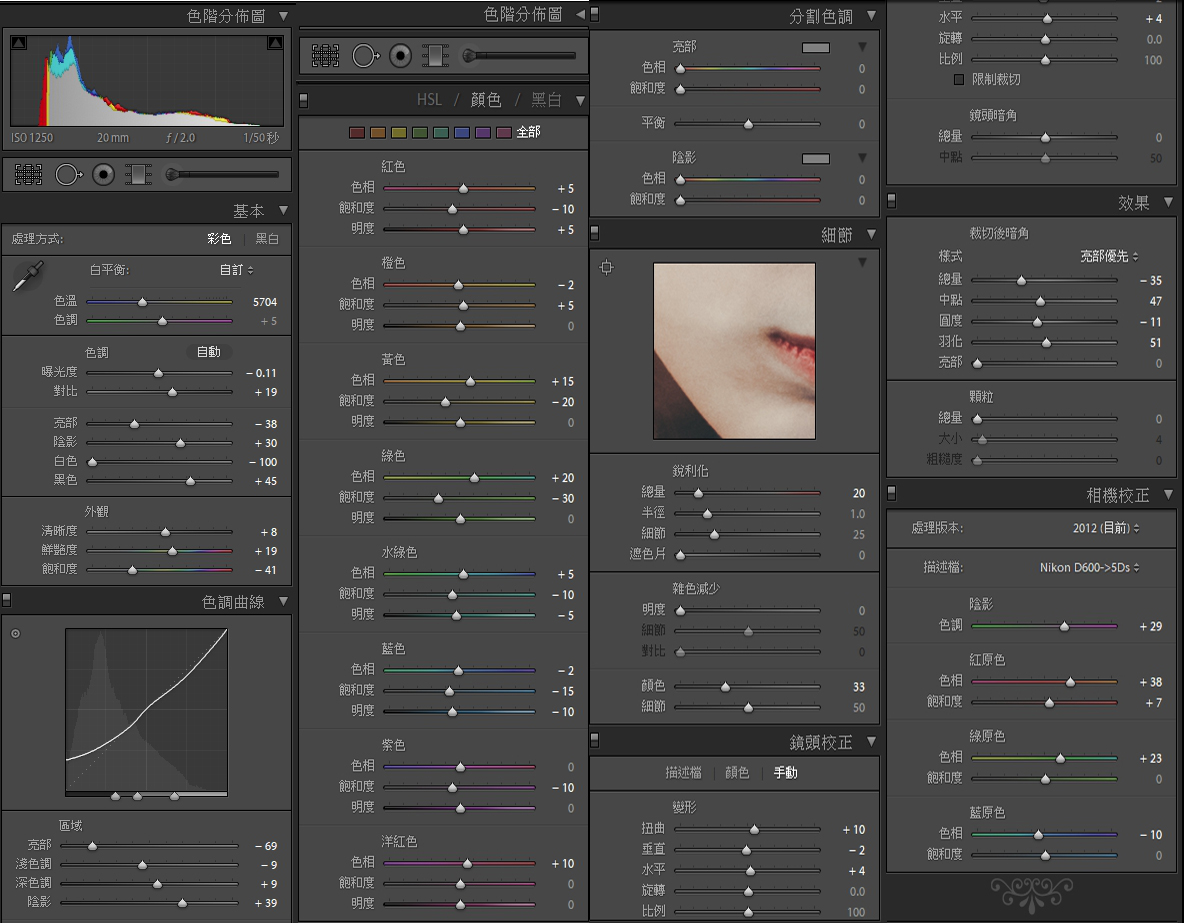 所以我在這提供我的修顏色的所有細節數據~